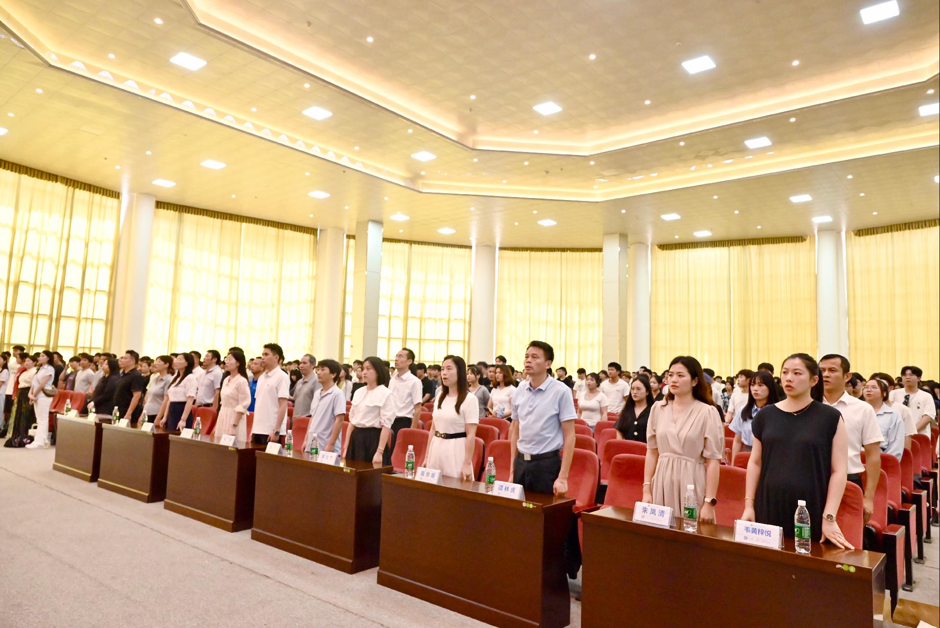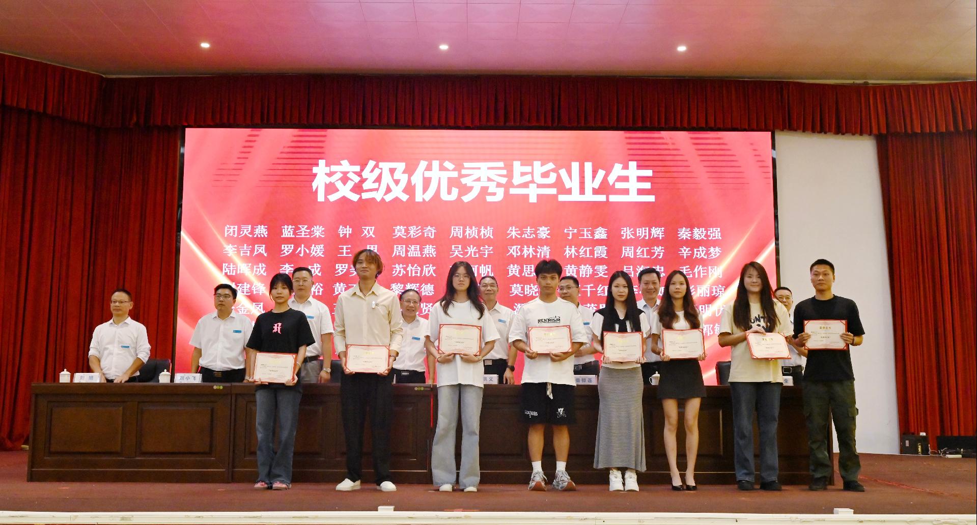 下午15时,毕业典礼暨表彰大会在庄严的国歌声中拉开帷幕。鲁明宣读了学校关于准予2025届毕业生毕业的决定,秦樟连宣读了优秀毕业生表彰决定,刘小飞宣读了2023-2024学年评奖评优表彰决定。