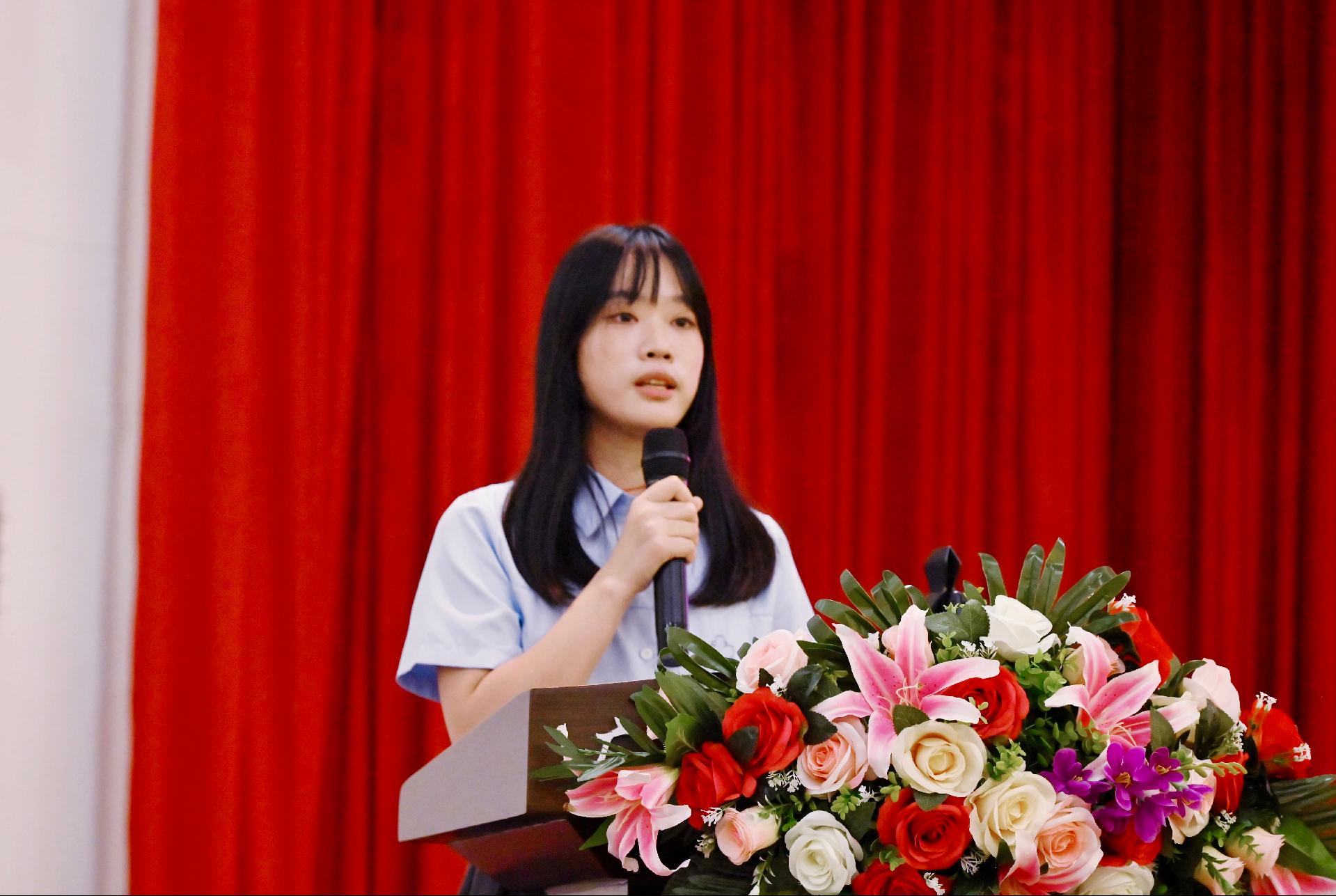 经济与管理学院辅导员张丁华作为教师代表发言。她深情回顾了本届毕业生的在校时光,并寄语毕业生要勇于迎接挑战,永葆学习热忱,心怀感恩,传递善意,调整心态,积极前行。无论前路是繁花似锦亦或荆棘丛生,始终步履坚定,脚踏实地,去追寻心中的星辰大海,书写属于自己的壮丽人生!
