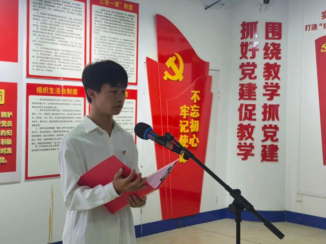 来自道远消防学院的优秀团员代表覃添恒同学分享了自己在团组织中的成长经历和感悟,他鼓励新团员们要珍惜团员身份,牢记团员使命,在学习和生活中发挥模范带头作用。